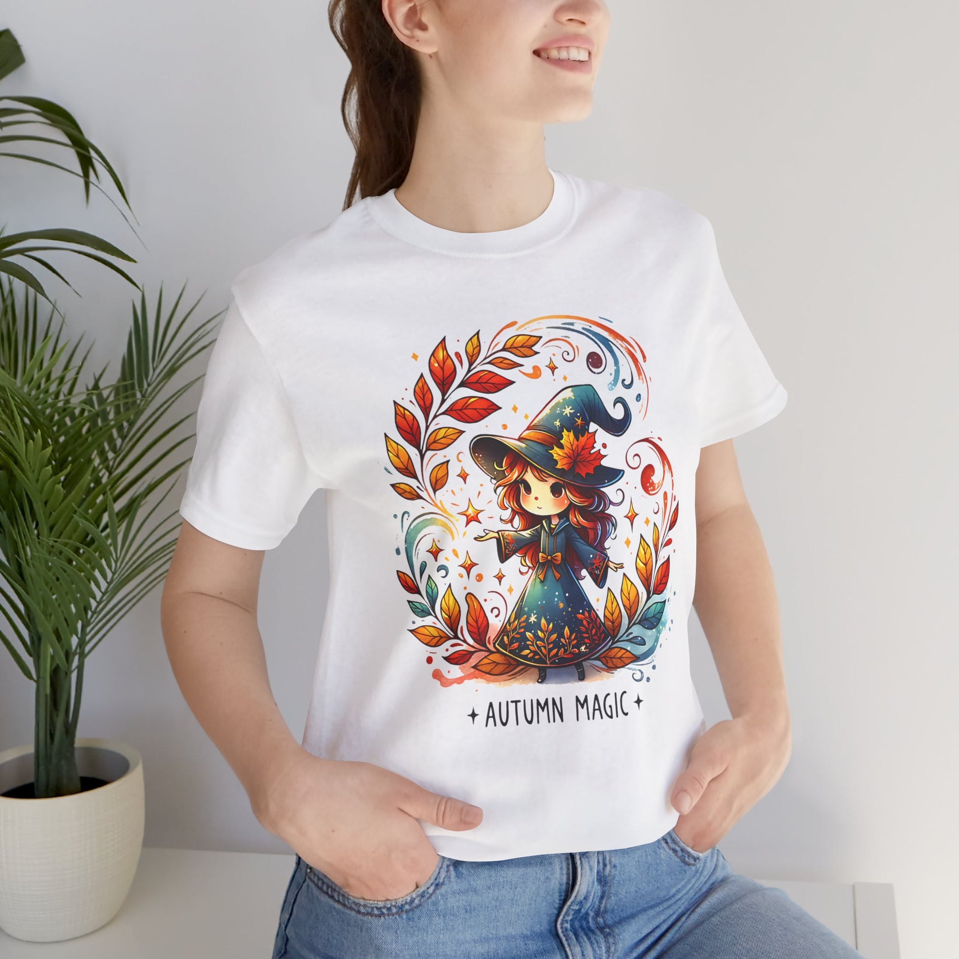 Autumn Magic Witch Tee, Fall Apparel, Halloween Shirt, Unisex Casual Tee, Seasonal Clothing, Gift for Witches