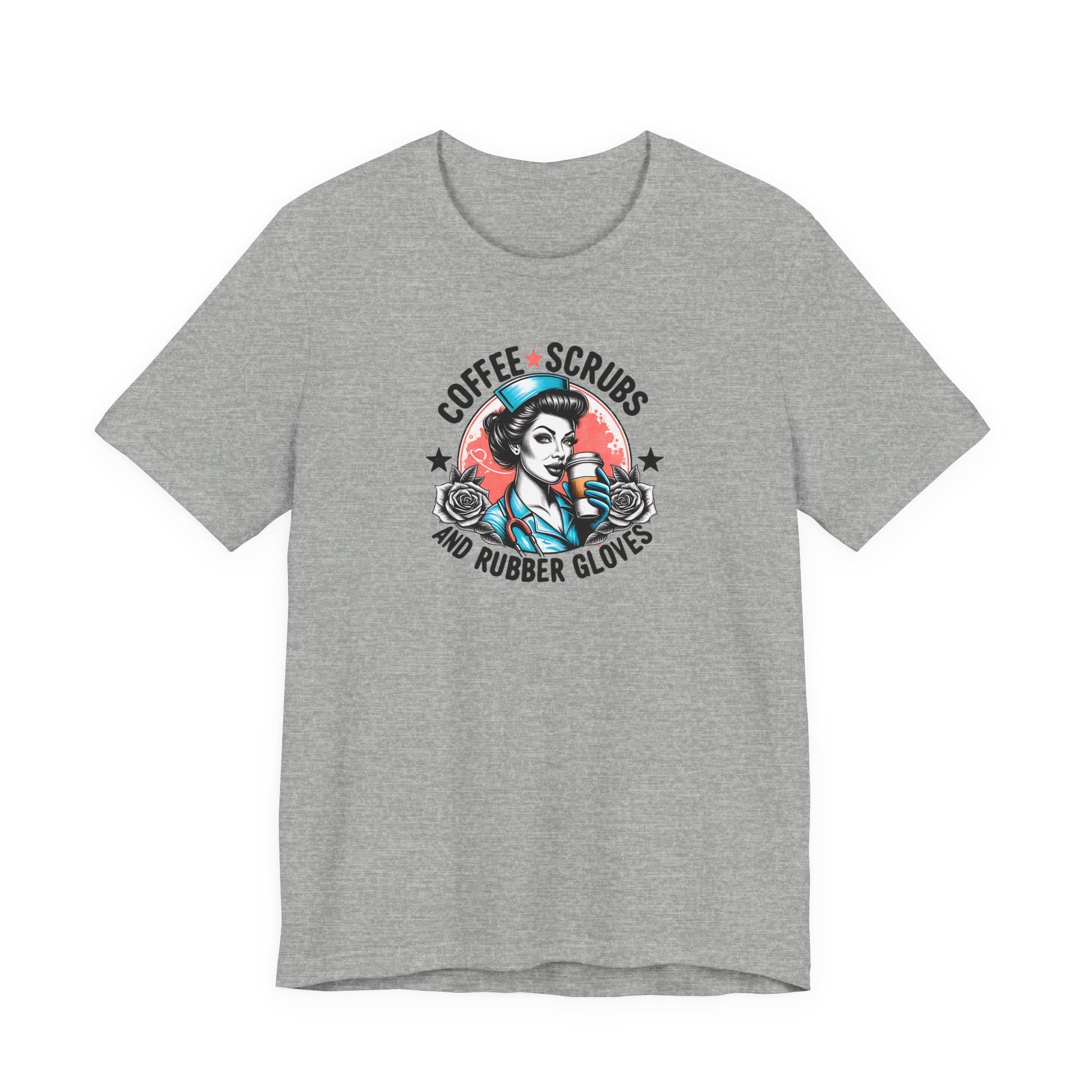 Coffee Scrubs and Rubber Gloves Bella Canvas Tee Gift for yourself or your favorite Nurse.