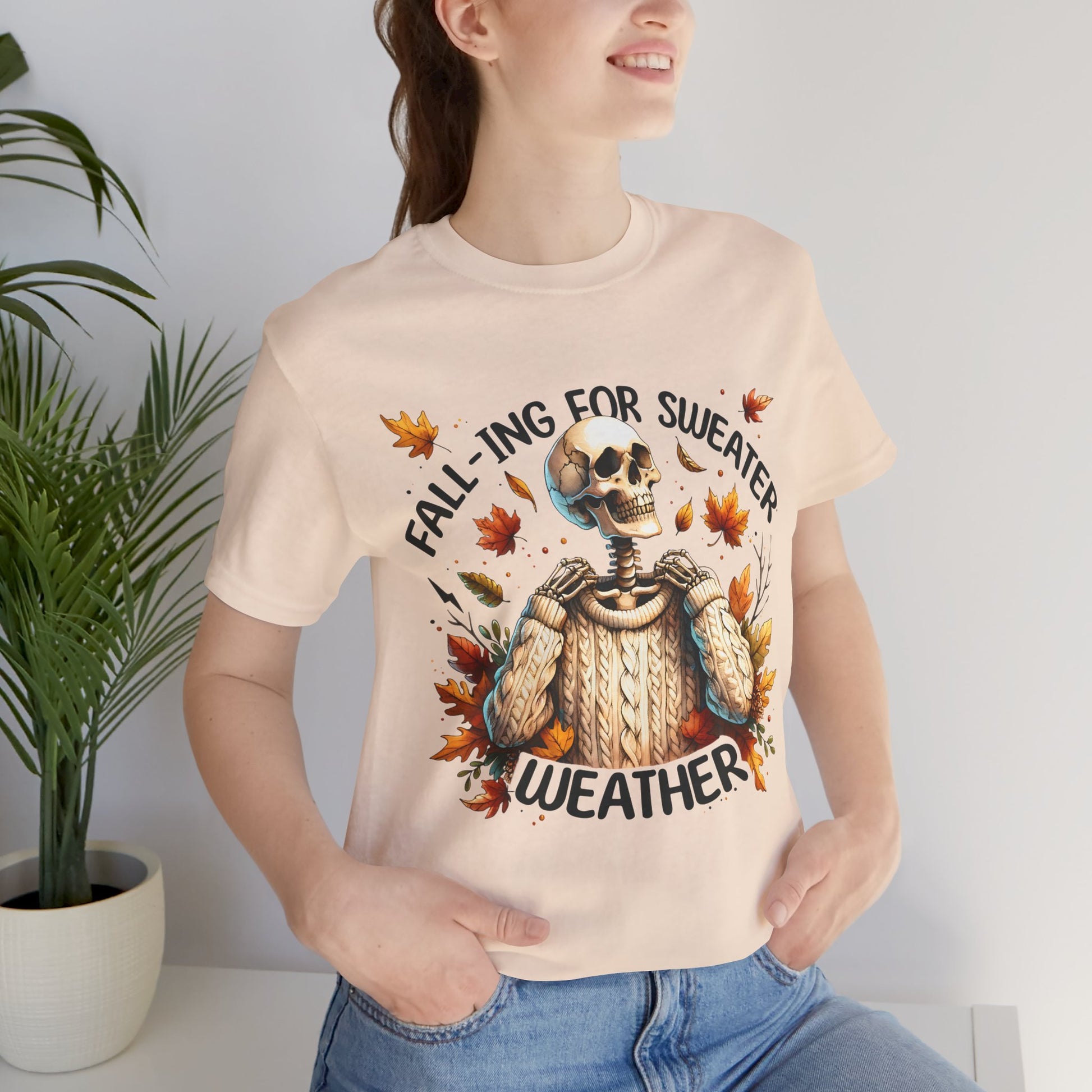 Embrace the cozy vibes of autumn with this stylish unisex jersey short sleeve tee! The playful design captures the essence of sweater weather, making it a perfect addition to your casual wardrobe. Feel comfortable and confident while enjoying outdoor activities or lounging at home. Ideal for anyone who loves the fall season, this tee makes a great gift for friends and family during Halloween, Thanksgiving, or just as a fun surprise. Layer it with your favorite jacket or cardigan for a chic look that’s effortlessly stylish.