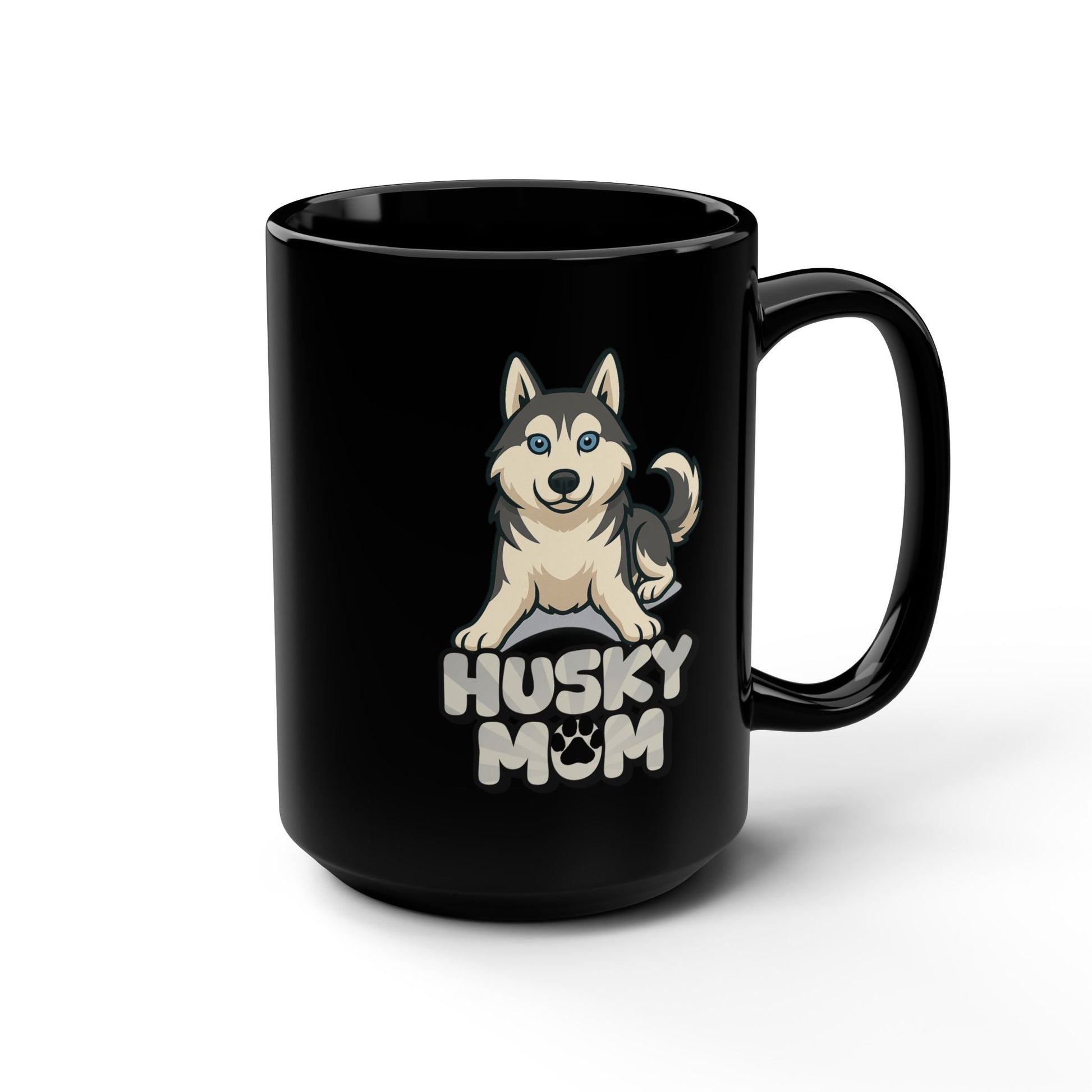 Husky Mom Black Mug, 15oz | Dog Lover Gift, Coffee Cup, Pet Owner, Animal Lover, Siberian Husky