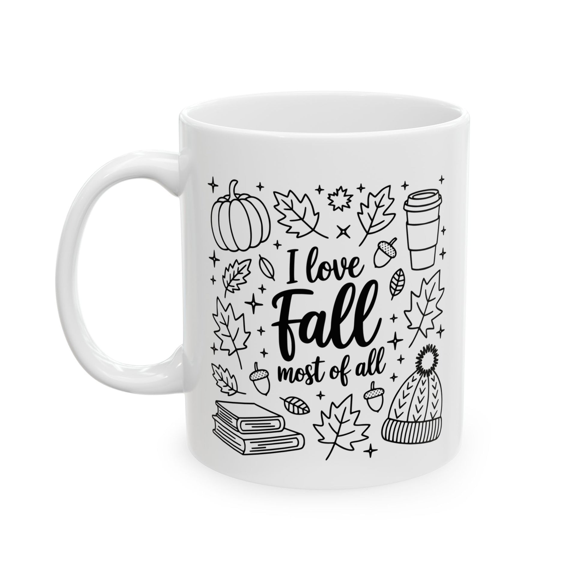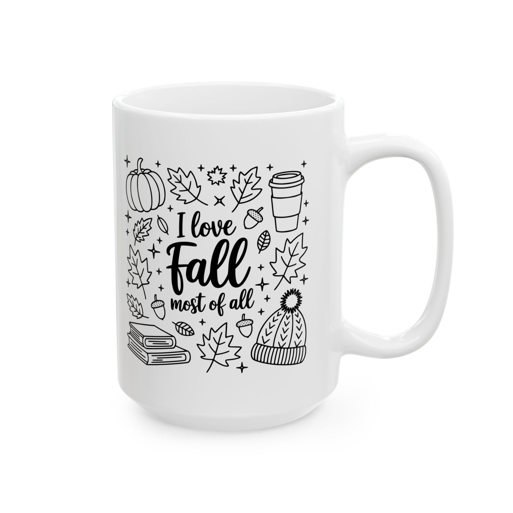 I Love Fall Most of All Mug 11oz 15oz Fall-Themed Ceramic Mug Cozy Coffee Cup for Autumn Lovers Perfect Gift for Tea and Coffee Enthusiasts
