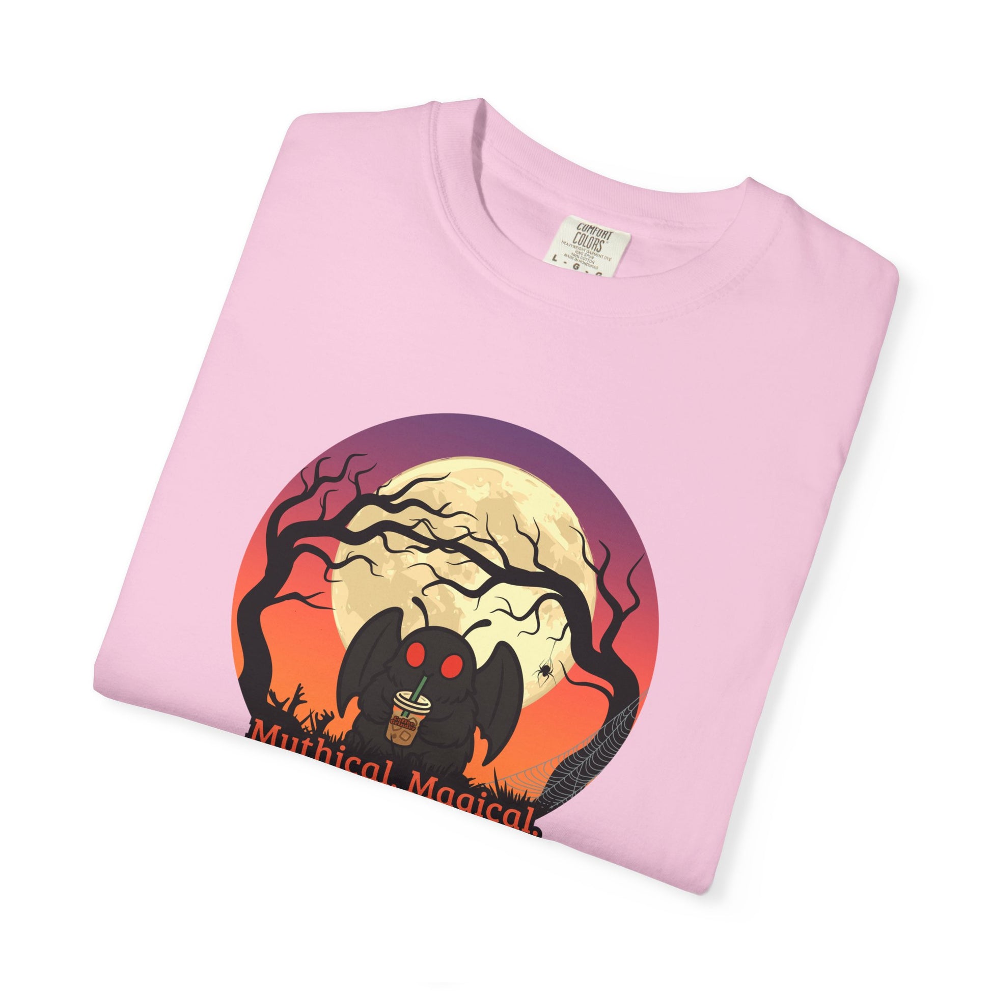 Cute Mothman drinking coffee. Magical, Mythical, Caffeinated. This Comfort Colors Unisex Garment-Dyed T-Shirt, is designed for comfort and style. This tee brings a soft, laid-back vibe that's perfect for everyday wear.